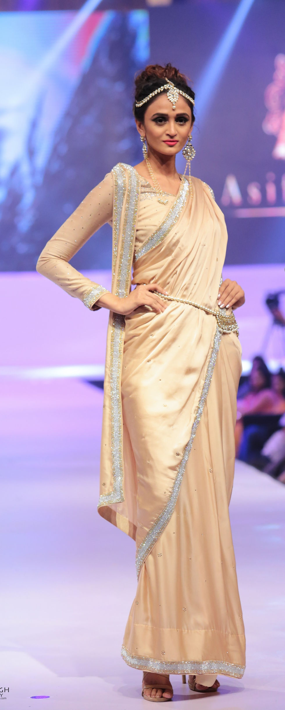 ITALIAN SATIN WITH SWAROVSKI BORDER & SAME FABRIC BLOUSE